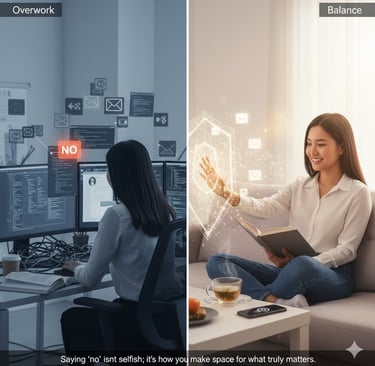 Work-life harmony doesn’t mean being constantly available — it means being consciously present where you’re needed most. Learning to say “no” with kindness is a vital skill. Decline extra shifts, unnecessary meetings, or late-night calls that drain you. Boundaries are not barriers; they are bridges to balance and better performance.