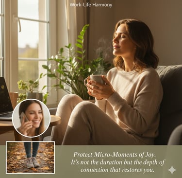 Work-life harmony is about integration, not separation. It’s a mindset that lets your personal and professional lives complement rather than compete.